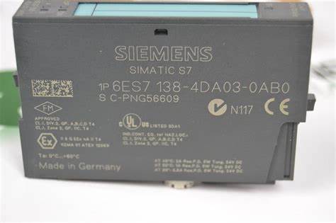 Product Article Number (Market Facing Number) 6ES7138-4DA03-0AB0 Product Description SIMATIC DP, ELECTRONIC MODULE F. ET 200S, 1 COUNT 24V/100KHZ 15 MM WIDE, OPERATION MODES: COUNT,