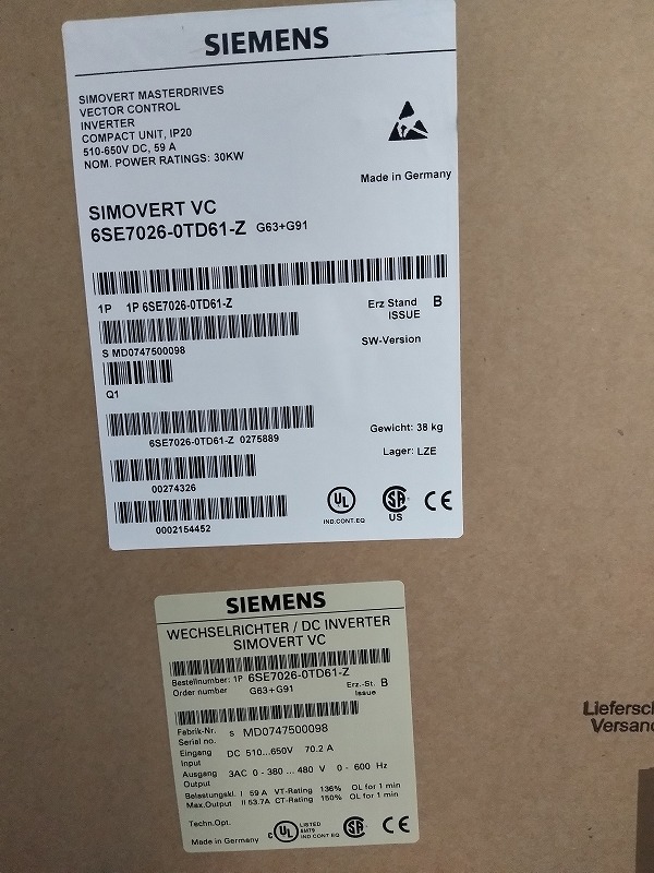 6SE7026-6FE60 SIMOVERT MASTERDRIVES Article Number (Market Facing Number) 6SE7026-6FE60 Product Description SIMOVERT MASTERDRIVES VECTOR CONTROL CONVERTER CHASSIS UNIT, IP00 3 500-600V AC, 50/60HZ, 66 A