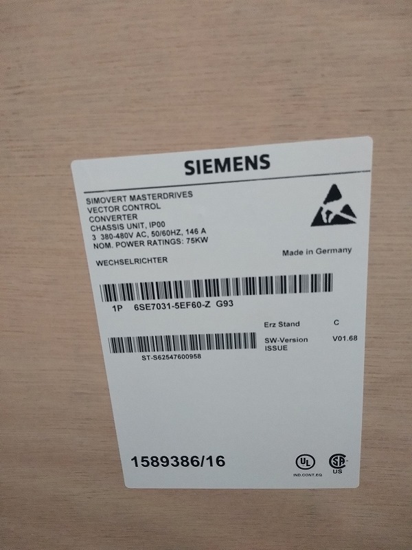 6SE7031-5HG20 SIMOVERT MASTERDRIVES 660-690 V 3 AC, 50/60 Hz 145 A type rating: 132 kW